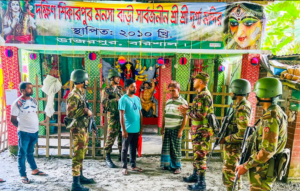 স্বরাষ্ট্র ও কৃষি উপদেষ্টা লে. জেনারেল (অব.) মো. জাহাঙ্গীর আলম চৌধুরী বলেন, বিশেষ নিরাপত্তাব্যবস্থায় আসন্ন দুর্গাপূজা অনুষ্ঠিত হবে। এবার পূজামণ্ডপকে কেন্দ্র করে পুলিশের পাশাপাশি র্যাব, বিজিবি ও সেনাবাহিনী মোতায়েন থাকবে। ফলে এবারের পূজা খুব ভালোভাবে হবে। কোনো ধরনের অসুবিধা হবে না। তিনি বলেন, দুর্গাপূজাকে কেন্দ্র করে নিরাপত্তাব্যবস্থায় প্রতিবার তো পুলিশ ও আনসার সদস্য থাকে, এবার বাড়তি হিসেবে বিজিবি ও সেনাবাহিনী যুক্ত হয়েছে।